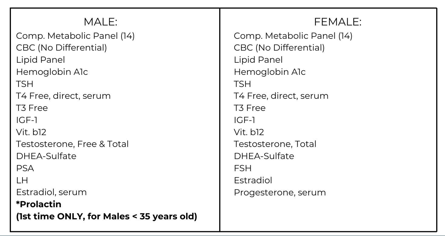 Your full panel is repeated each year to track progress. Additional labs may be drawn throughout the year to monitor your response and optimize treatment.